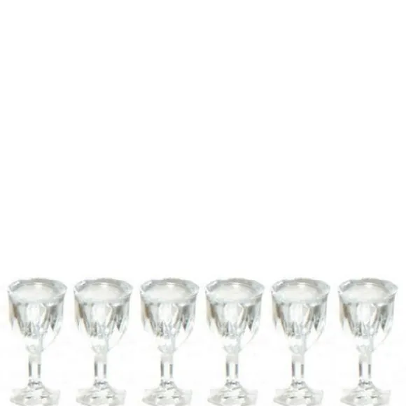 You get six plastic cut-glass pieces of stemware in this set. This set is 1/12 scale, which is the most common scale for dollhouses and dollhouse miniatures. It means that if an object is 12 inches in real life, it is sized down to a one inch as a miniature.