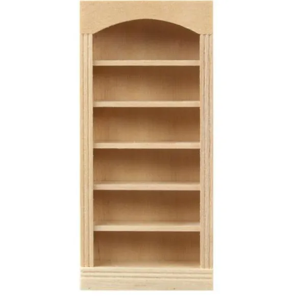 This bookcase is 1/24 scale, which is half the size of the standard 1/12 scale used in dollhouses. This scale is also known as 1/2 inch scale, meaning an item that is 12 inches in real life is sized down to one half inch in a dollhouse miniature. It measures 1-3/4″ W x 3-3/4″ H.