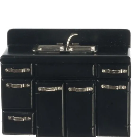Black Dollhouse Miniature Double Kitchen Sink with Cabinets