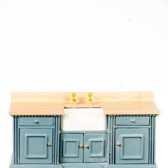 Blue & Oak Dollhouse Miniature Sink & Counter