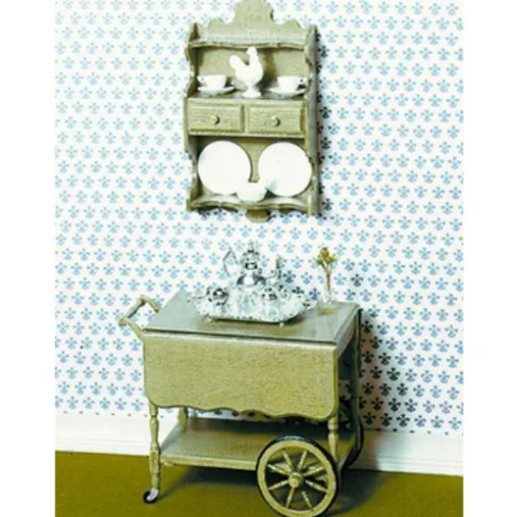 This polystyrene kit includes a tea cart on wheels with a hanging wall shelf, rooster, nesting hen, and stain for fine finishing. Assembly is fast and easy when you use a plastic model glue and follow the detailed enclosed directions. It is 1/12 scale, which is the most common scale for dollhouses and dollhouse miniatures. It means that if an object is 12 inches in real life, it is sized down to a one inch as a miniature.