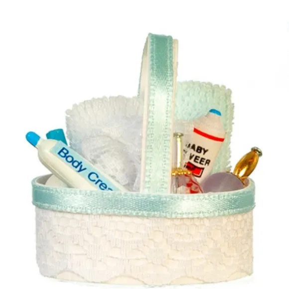 Dollhouse Miniature Blue Bath Accessory Basket