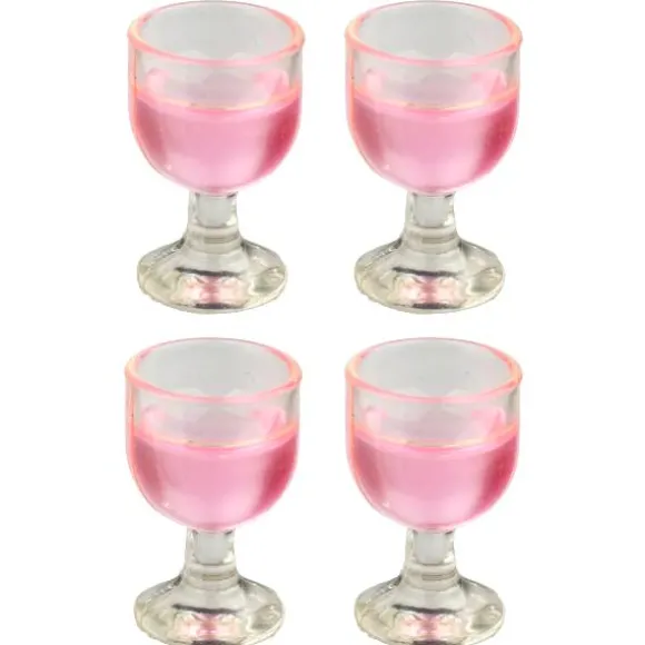 You get four mini rose wine glasses in this set. They are 1/12 scale, which is the most common scale for dollhouses and dollhouse miniatures. It means that if an object is 12 inches in real life, it is sized down to a one inch as a miniature.