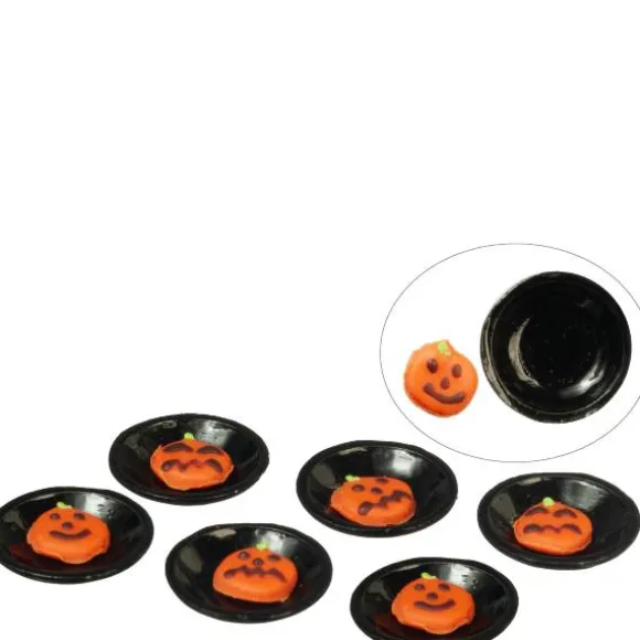 These mini Halloween cookies are 1/12 scale, which is the most common scale for dollhouses and dollhouse miniatures. It means that if an object is 12 inches in real life, it is sized down to a one inch as a miniature. Each plate measures .125″ H x .5″ W x .5″ D.