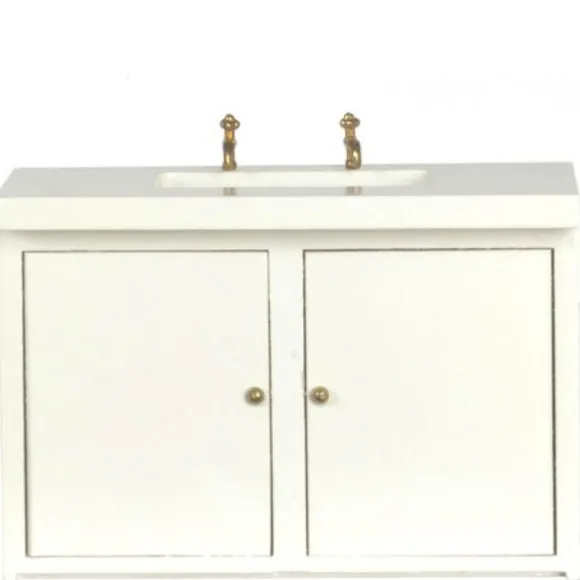 Dollhouse Miniature Modern White Kitchen Sink Cabinet