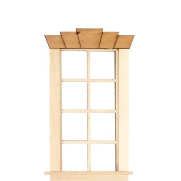 This mini window with five key decorative top is 1/12 scale, which is the most common scale for dollhouses and dollhouse miniatures. It means that if an object is 12 inches in real life, it is sized down to a one inch as a miniature. It measures 2-1/2″ W x 5″ H.
