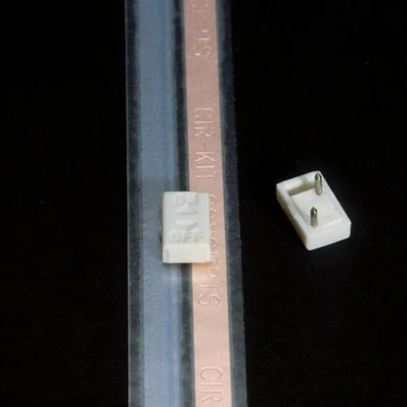 Its spring-loaded eyelets are provided to allow the easiest of installations. Simply install the eyelets and push in the switch–no pounding required. The fully illustrated instructions included with each switch ensures a successful installation every time. It has a 600 ma current rating, and each package also contains .25″ brass brads for use as marker pins when wallpapering.