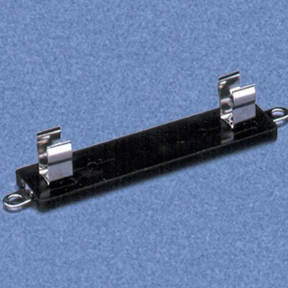 The socket is equipped with embedded nails which automatically make electrical contact with a tape run when pounded in. It has solder eyes for the connection and soldering of wires at each end. It measures approximately 3/16″ W x 1 5/8″ L. It is compatible with 12V Flourette Bulbs.