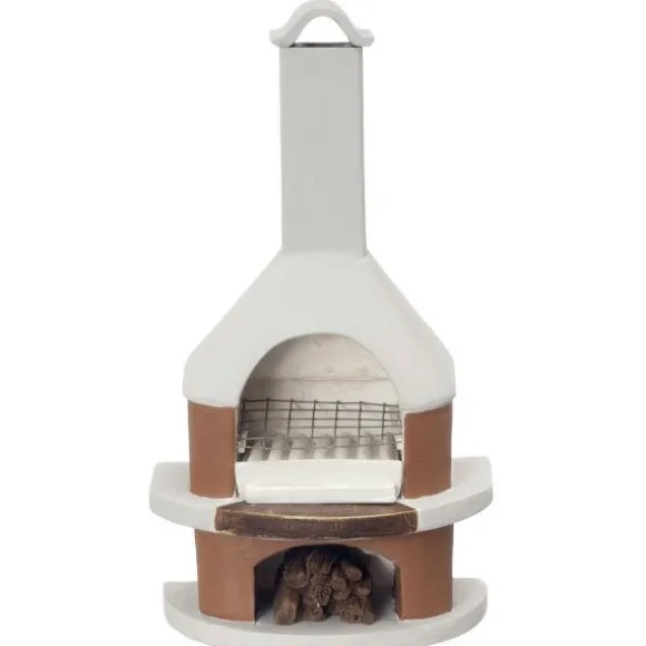 This contemporary outdoor fireplace is made of painted resin and comes with logs and a removable cooking platform and grate. It is 1/12 scale, which is the most common scale for dollhouses and dollhouse miniatures. It means that if an object is 12 inches in real life, it is sized down to a one inch as a miniature. It measures 3-1/2″ W x 6-1/2″ H.