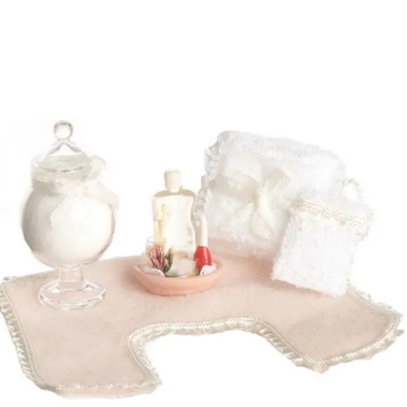 Pale Pink Dollhouse Miniatures Bathroom Accessories