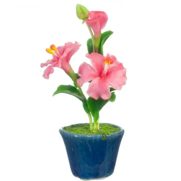Pink Dollhouse Miniature Hibiscus in a Pot