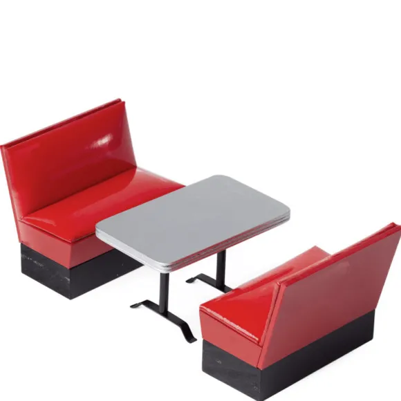 Slipping into this cherry-red booth is like slipping into a scene from Grease. It is 1/12 scale, which is the most common scale for dollhouses and dollhouse miniatures. It means that if an object is 12 inches in real life, it is sized down to a one inch as a miniature. Each piece measures: