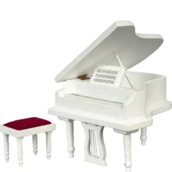 White Dollhouse Miniature Piano & Bench