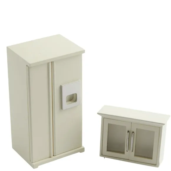 You’ll love this clean and modern fridge and the white cabinet that comes with it. They are 1/12 scale, which is the most common scale for dollhouses and dollhouse miniatures. It means that if an object is 12 inches in real life, it is sized down to a one inch as a miniature. They measure: