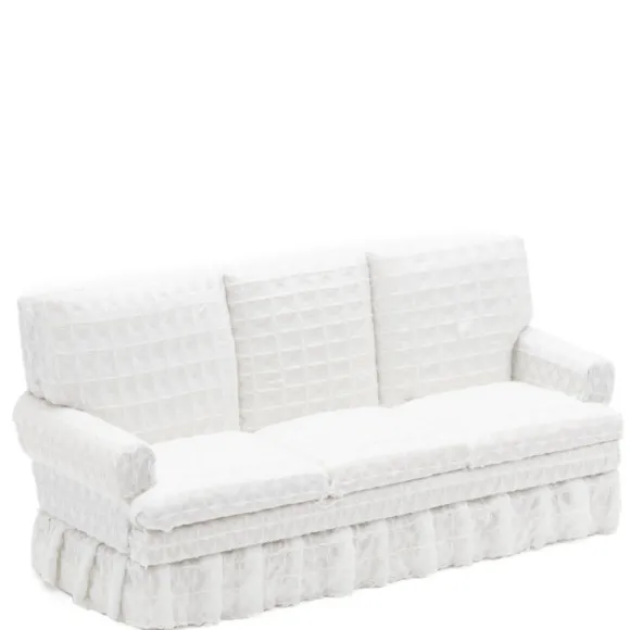White Dollhouse Miniature Ruffle Sofa