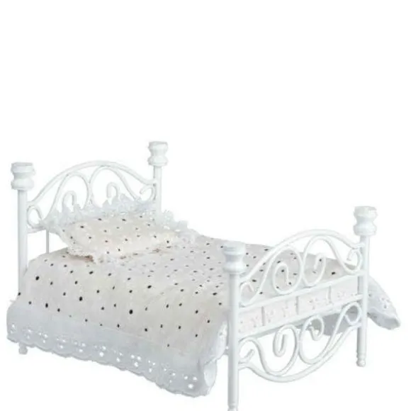 White Metal Dollhouse Miniature Double Bed